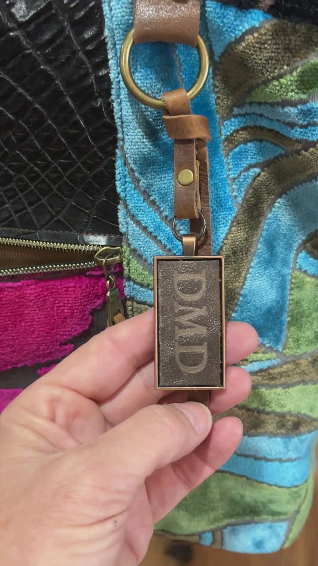 Gorgeous fabrics and a bit of black alligator hide! Lots of organization pockets!! So many scrumptious details that are beautiful and so very practical. This bag is airline friendly to use as a second carry on. The interior details turn this bag into a super travel purse with pockets for cash and ID. A roomy pocket with magnetic closure that will fit a LAPTOP, O Ring for clipping keys and separate hook to clip a pouch with your charging cords (sold separately). Interior is large enough for a couple changes of clothes.