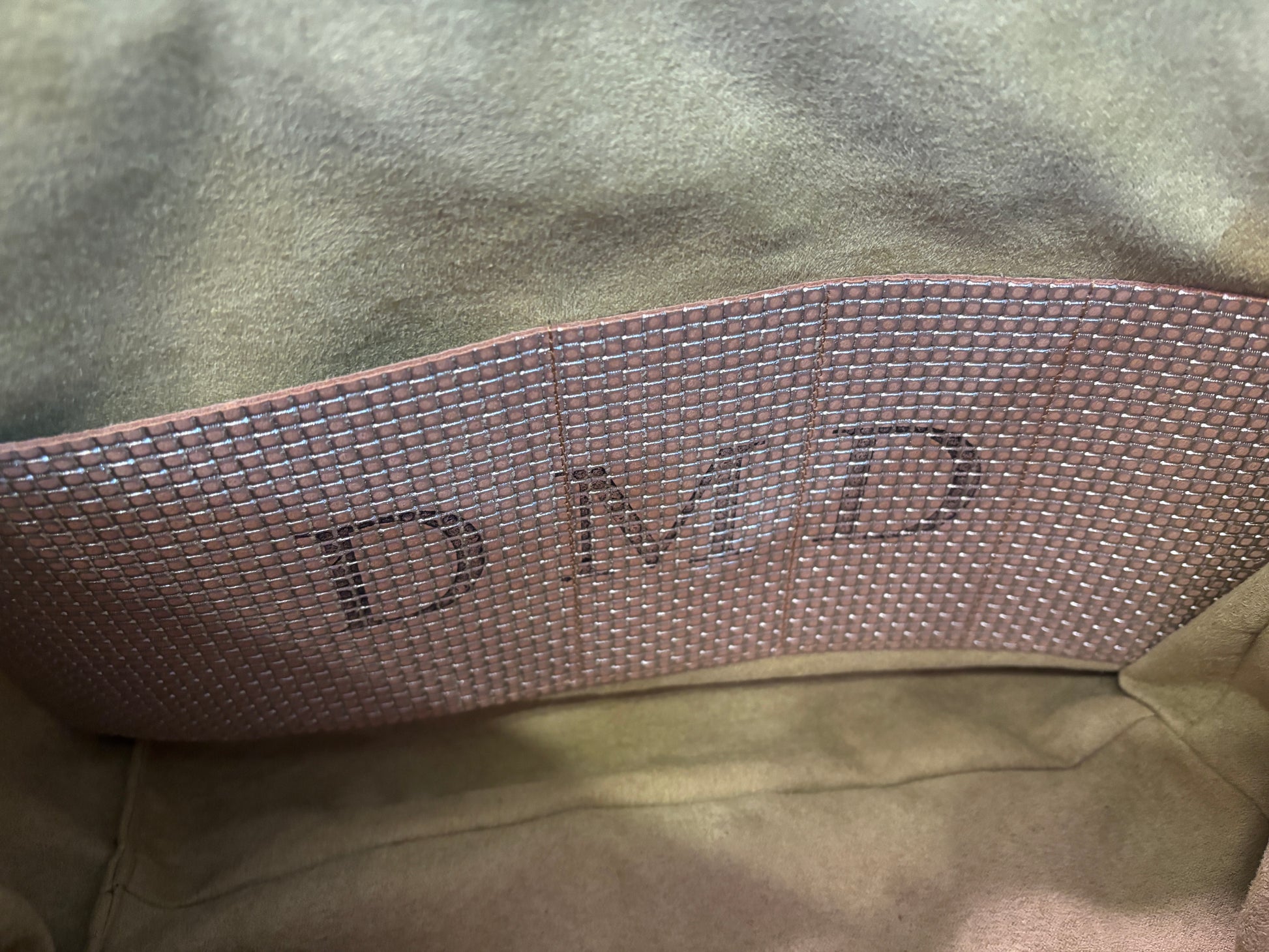 Great medium size bag handmade one of a kind using couture and high end cut velvets and leathers. Exterior front and back zippered pockets creatively made and keeping you organized. Interior is filled with organizer spots for all of your needs.