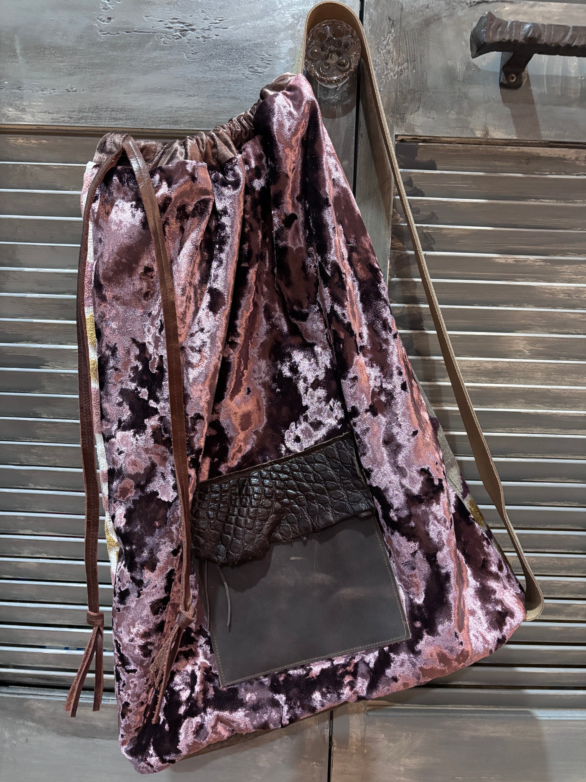 Pillow Bag Dusty Rose & Chenille with leather and alligator pocket