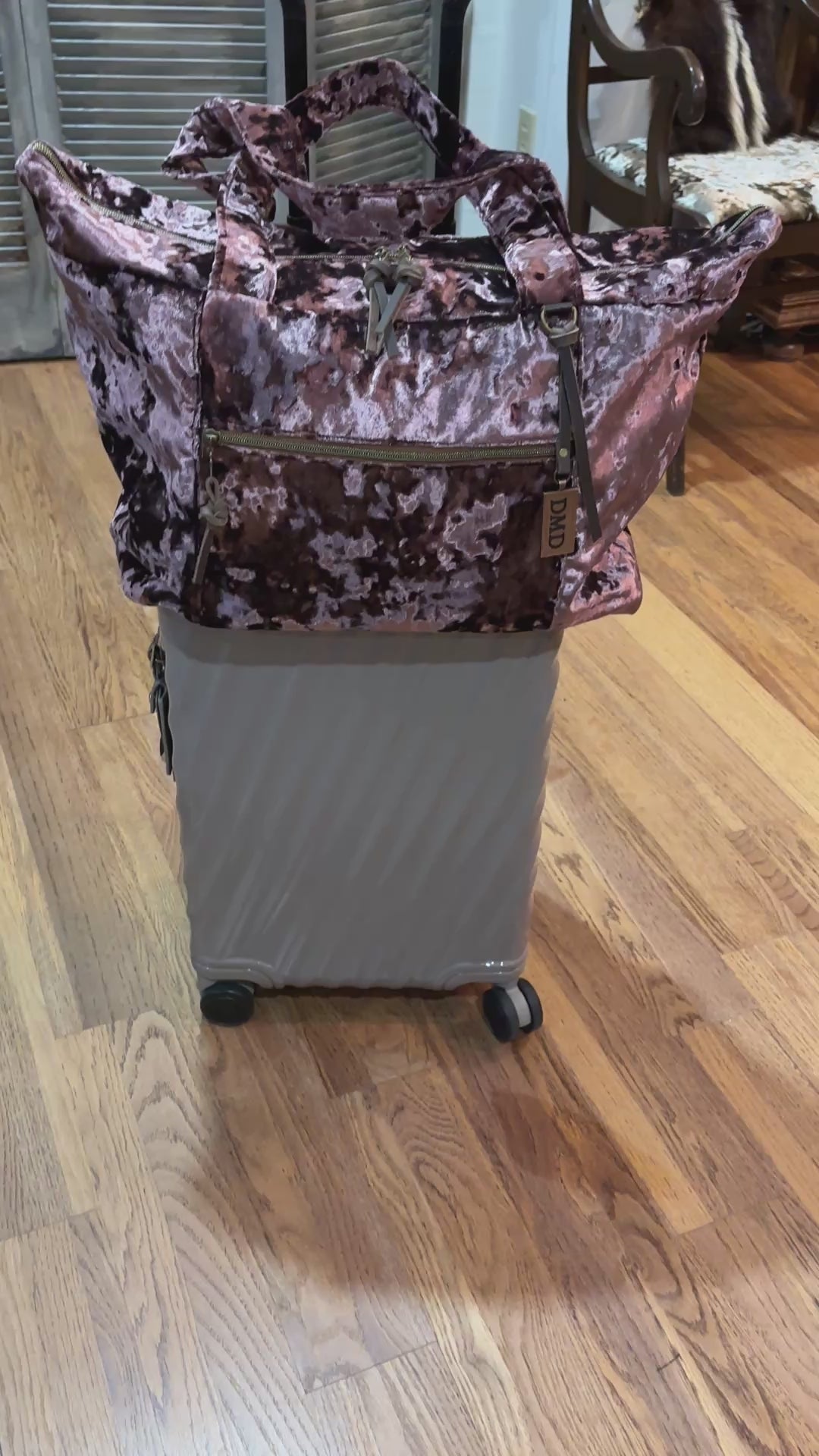 Lots of organization pockets!! So many scrumptious details that are beautiful and so very practical. This bag is airline friendly to use as a second carry on. The interior details turn this bag into a super travel purse with pockets for cash and ID. A roomy pocket with magnetic closure that will fit a LAPTOP, O Ring for clipping keys and separate hook to clip a pouch with your charging cords (sold separately). Interior is large enough for a couple changes of clothes.